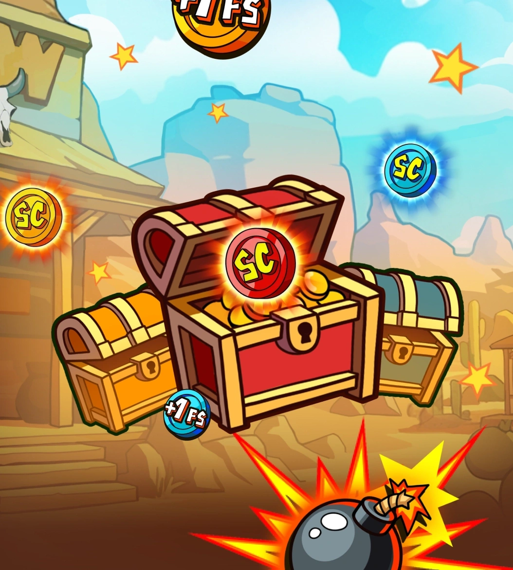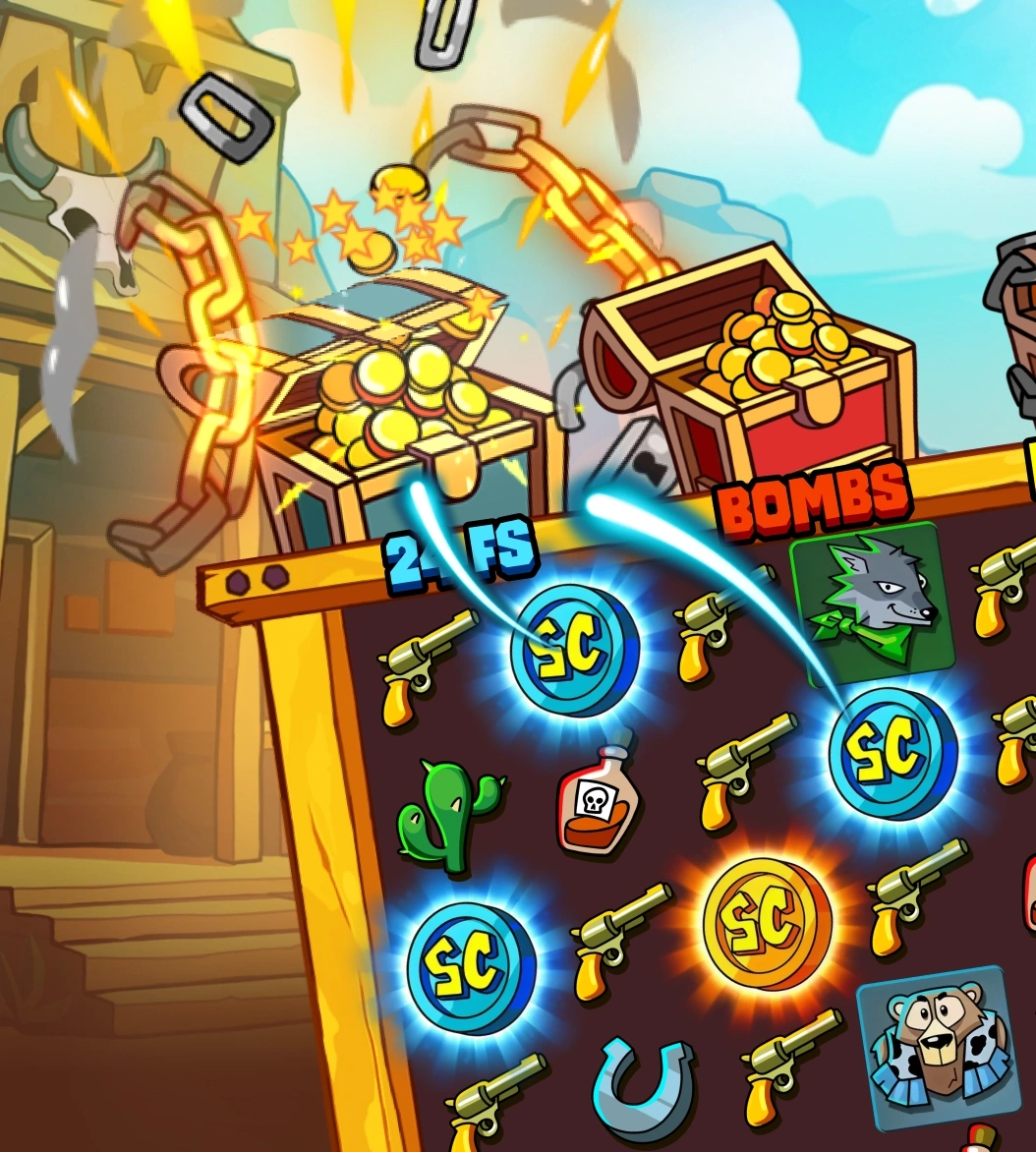 Treasure Chest System - Three horizontal chests collect colored scatters with random activation.