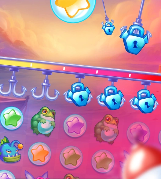 Unleash the power of Hooked Floats by revealing all 6 Hooks above the reels as you play.