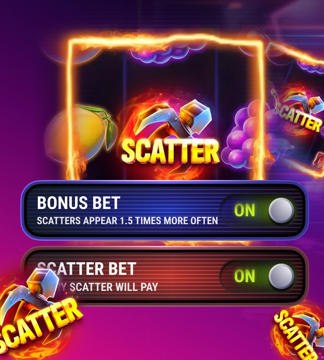 Dynamic Base game with a good paytable paired with Claw Bonus game with increasing multipliers. We also added something new and spicy: Scatter Bet which allows players to place an additional bet on the scatters to win up to x777. This game will be fast, clean, beautiful but most importantly - it will be fun!