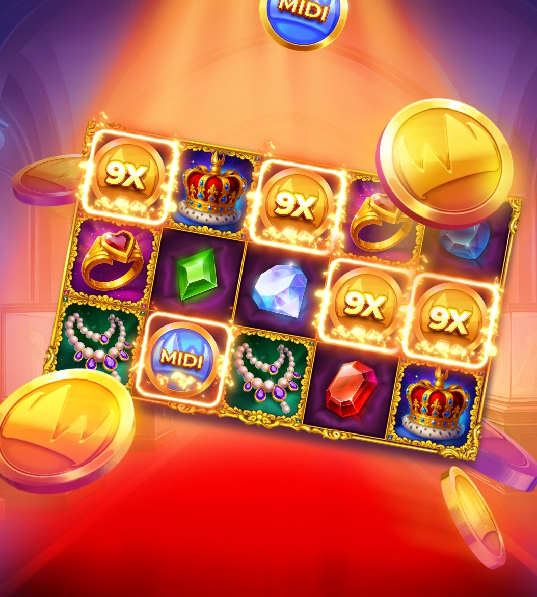 Activates randomly to scoop gems from the Golden Gem Pile and drop them directly onto the reels. Can grab Regular Gems for instant wins or Jackpot Coins, adding bursts of excitement and surprise to every activation.